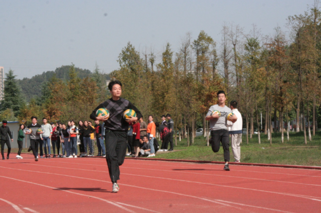 秋高气爽,晴空万里,绿草如茵,比赛先是以班级为单位进行男女迎面趣味接力赛。系领导和任课教师也加入其中。在紧张激烈的比赛中,各班团结协作、力争上游,展现了良好的配合和默契。比赛现场,掌声、笑声、加油声,此起彼伏,充满了热烈欢乐的气氛。