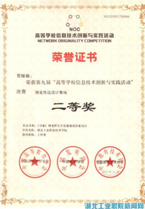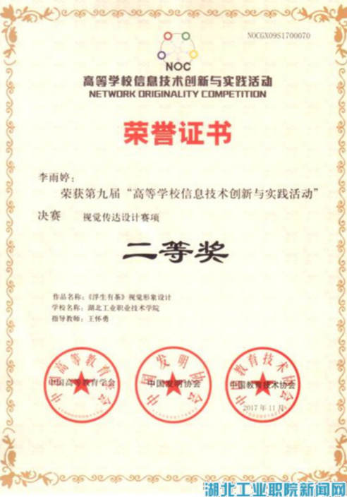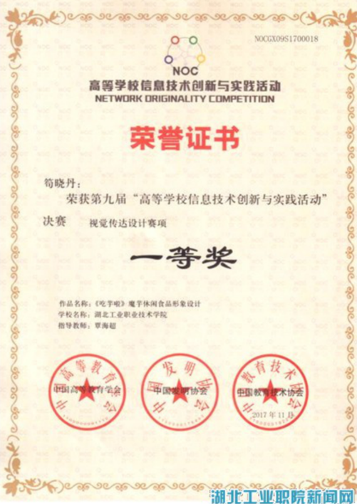 新闻网讯(通讯员王怀勇)近日,从中国高等教育学会、中国发明协会、中国教育技术协会主办的第九届高等公司信息技术创新与实践活动(简称高校NOC活动)决赛中传回捷报,公司艺术设计系选送的员工参赛作品笱晓丹《吃芋啦》魔芋休闲食品形象设计获得一等奖;李雨婷《浮生有茶》视觉形象设计、贺娅娅《寻蜜》神龙野生百花蜜视觉形象设计分别获得二等奖;陈彬彬《银座清酒》视觉形象设计获得三等奖的好成绩。