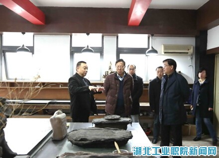 在顾善远、周元国、陈穗川等院领导陪同下,杨植涛一行实地考察了艺术设计系,先后走进漆艺、陶艺、丝网印刷、材料展示等实训室参观,并饶有兴趣地观看了2012级毕业生DIY创意作品展;