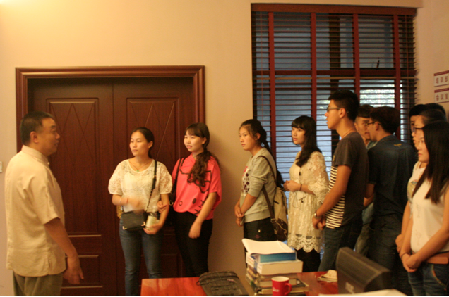 见面会后,科技公司2014级新生在系主任姚强的带领下,参观了艺术系的校内实训室及校内系企合作单位。