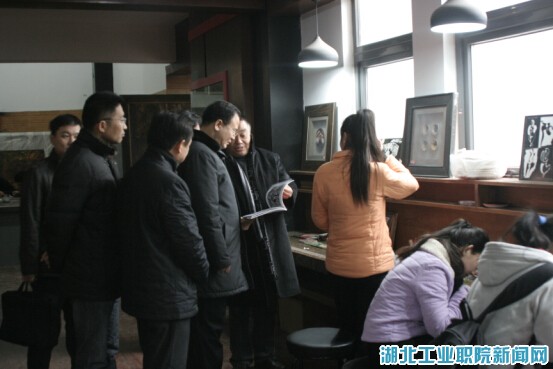 在艺术设计系陶艺和漆画工作室,李建红一行观摩了员工制作漆艺作品的过程,参观了师生画展和校企合作实训基地。