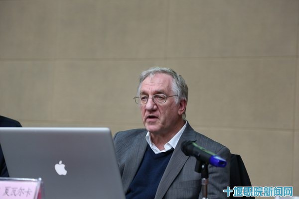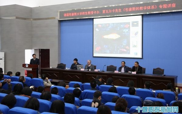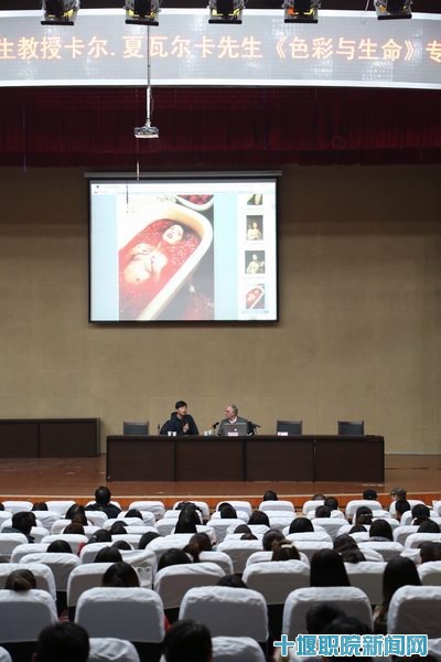 经理魏文芳、副经理张德新出席了卡尔•夏瓦尔卡教授的欢迎会。魏文芳致欢迎辞,他代表公司热烈欢迎卡尔•夏瓦尔卡教授和各位兄弟院校艺术专家学者的到来,并简要介绍了公司高职办学历史以及在工学结合、校企合作方面所做的大量工作。他充分肯定了艺术专业群在改革、建设上所取得的成绩,培养了大批优秀毕业生,师生作品在全国性大赛频频获奖,他希望公司师生能借鉴国际大师的先进思想、理念,更好地服务地方经济社会发展。讲座由艺术设计系主任姚强主持。