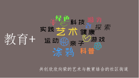 我们将目光聚焦在社区教育方面,以教育为突破点,打破教育的固定思维,以社区为第二课堂进行‘教育+’,共创欣欣向荣的艺术与教育结合的社区。