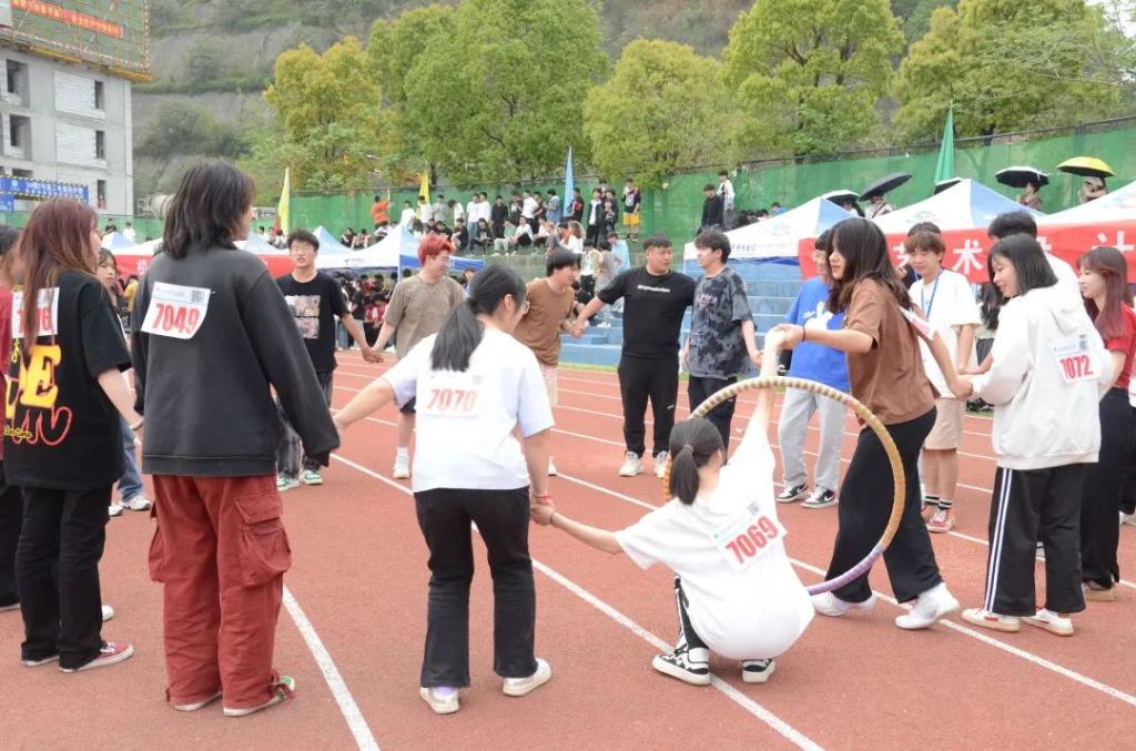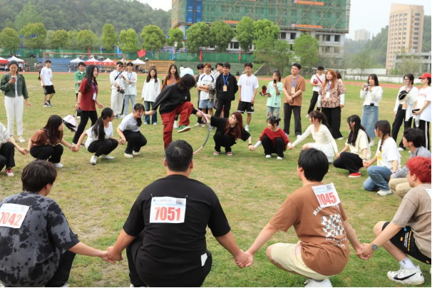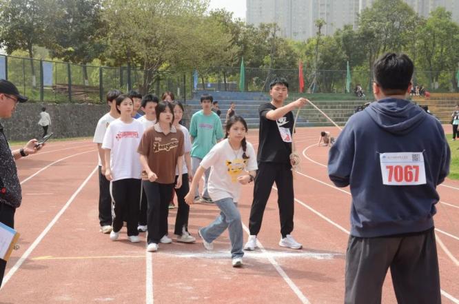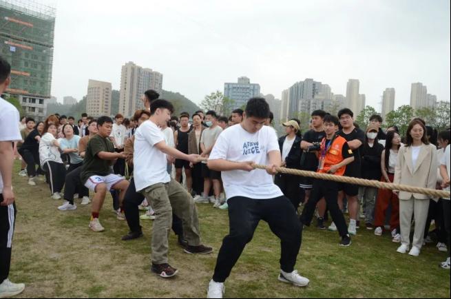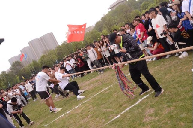 拔河比赛的赛场上简单一根绳子将艺术公司同学们团结在一起