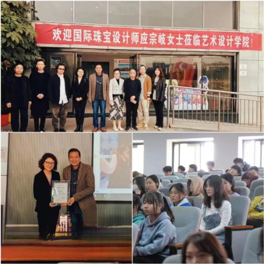 讲座开始前,公司教师代表、绿松石校企负责人和应宗岐女士进行了交流座谈,共同沟通人才培养之道,探索教师发展之路,探讨新时代对设计人才的新要求。讲座首先由郭建忠副经理介绍应宗歧老师基本情况。应宗岐女士是旅法知名珠宝设计师,也是中法文化技术交流协会会长,拥有自己的珠宝设计品牌,具有丰富的设计经验。应宗岐女士从东西方文化在其哲学思想上和发展方向上的不同引入开始讲授。以中国玉文化和西方钻石文化为例阐释珠宝设计中东西方对颜色的偏好,传统工艺的选择,以及东西方文化在珠宝设计上的异同之处。同学们被应宗岐女士有趣又有深度的演讲所吸引,边听讲座边对“如何将中国设计走向世界”做出思考。讲座中应老师还分享了这次去2023年香港珠宝展的所见所闻。