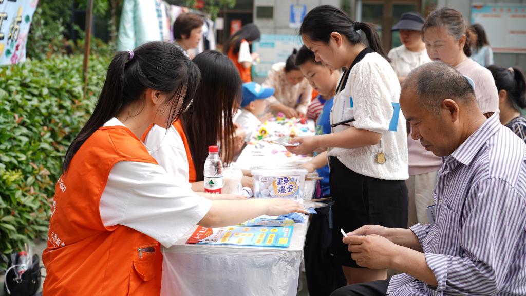 “志愿公益集市”现场聚集了书法文创、漂漆体验、粘土手工、安全宣传、文艺表演等一系列志愿摊位,许多居民一大早就来到活动现场,穿梭于各个摊位之间。在书法文创区,有的静静欣赏志愿者们挥洒墨宝,有的则充满了好奇跃跃欲试,在志愿者的指导下,现场居民共写出10余副对联;在漂漆体验区,志愿者一边讲解步骤要领,一边动手操作演示,用扇子、书签等材料完成了30余个与众不同的漂漆作品;在粘土手工区,志愿者与小朋友们共同创作出了20余个形态各异的手作;在安全宣传区,志愿者用大众喜闻乐见的方式宣传防溺水、防范电信诈骗、消防安全等各类知识;文艺表演把活动推向高潮,通过歌曲、舞蹈的形式,展现了大家积极向上的精神风貌和对未来的美好憧憬。