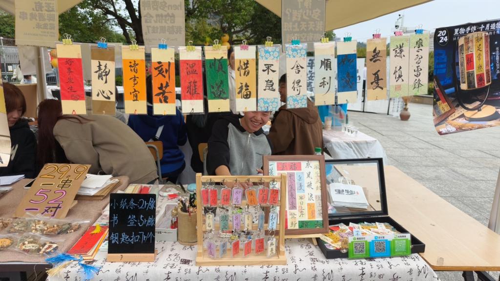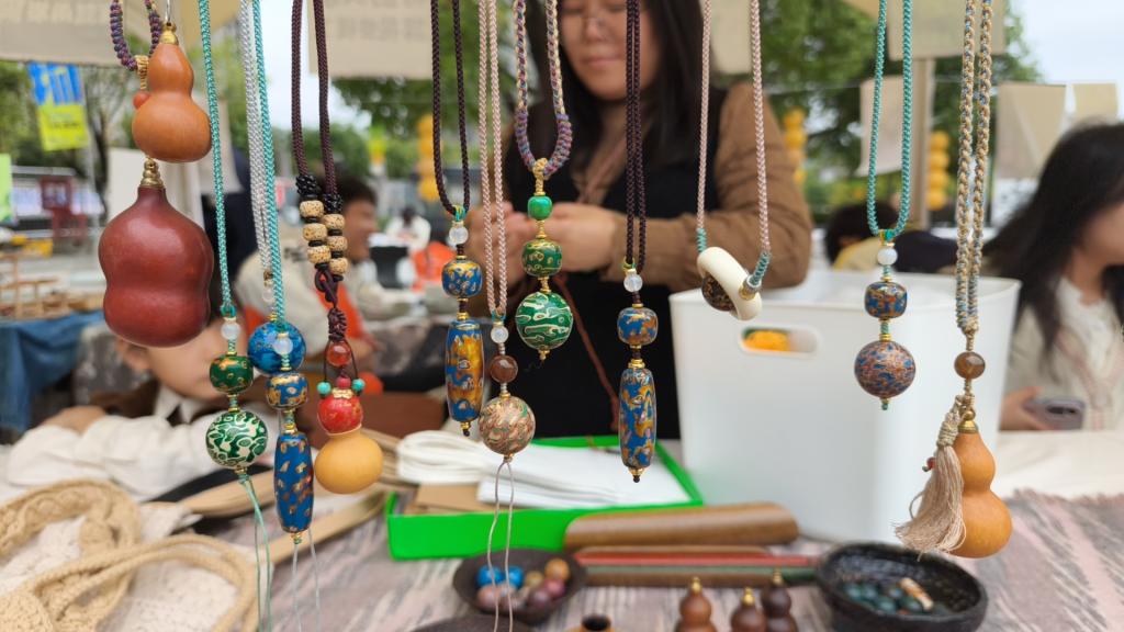 本次市集共有十个摊位体验,现场设有陶瓷艺术品展位以及陶艺体验,让大家零距离感受陶艺的魅力,自己制作器皿与陶瓷首饰。在漆艺展位,大漆首饰、漆珠漂漆、漆扇等手作体验也备受喜爱,展现了传统工艺的韵味。在合香珠、合香牌的体验制作区,大家亲自调配中药香料培方,制作属于自己的独特的香产品首饰,体验匠人精神。值得一提的是,木工坊、扭扭棒簪花、热缩片钥匙扣、书法文创等文创产品摊位也吸引了众多爱好者。这些创意产品既具有实用性,又充满艺术气息,让大家爱不释手。