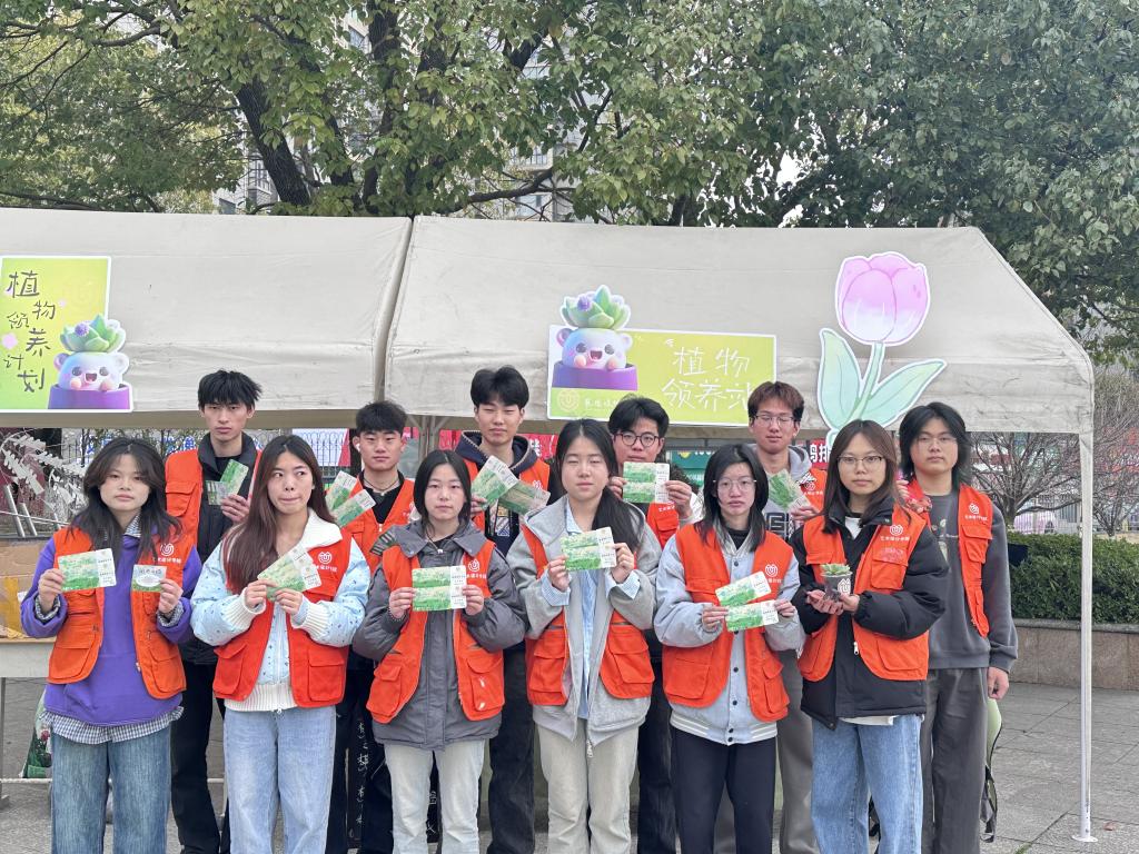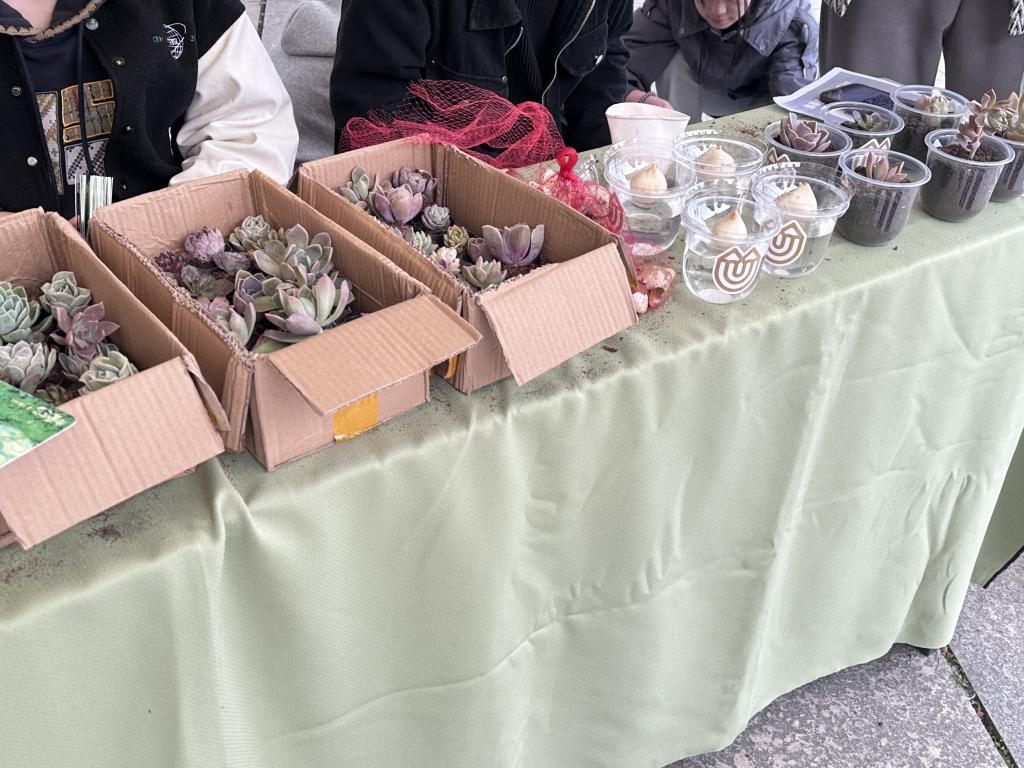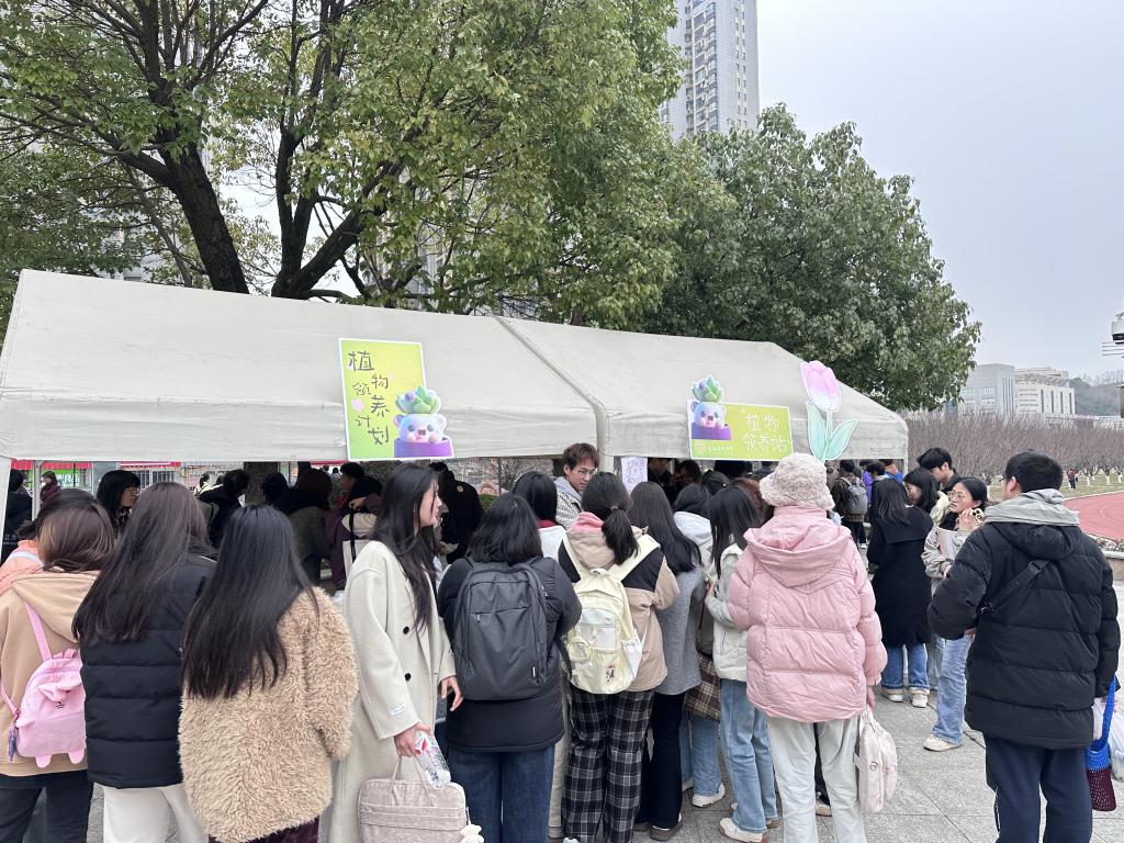 活动现场气氛热烈,知识竞答区域人头攒动。题目涵盖植物生长习性、环保知识、脑筋急转弯等内容,参与者们在思考回答中,不仅收获多肉、郁金香花球、种子纸等绿色礼物,还提升对植物和环保的认知。“这种形式很有趣,既学到知识,又能领养植物,感觉为环保出份力。”参与竞答的同学兴奋地说。