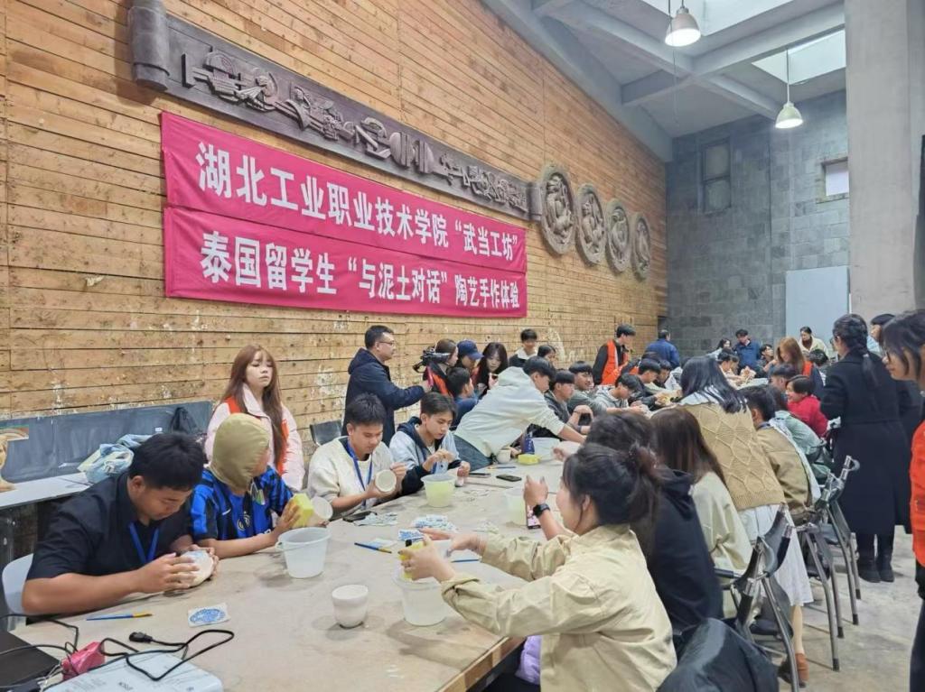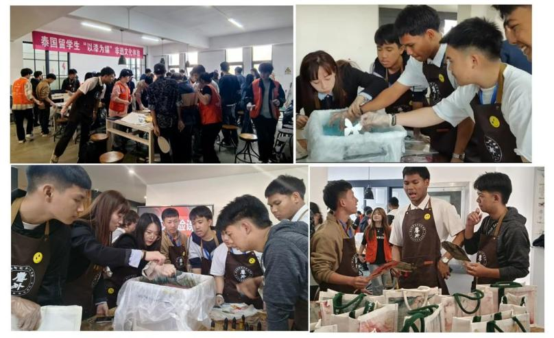 青花陶艺,传统技艺的现代演绎。在陶艺体验区,泰国师生在专业教师指导下尝试青花制作新工艺。借助预制纹样纸,他们通过浸水、转印、施釉等步骤,在葫芦杯上创作出精美的青花图案。一位泰国员工分享道:“看似简单的步骤背后是匠人的智慧,这次体验让我对中国传统工艺的精密与美感有了更深的理解。”