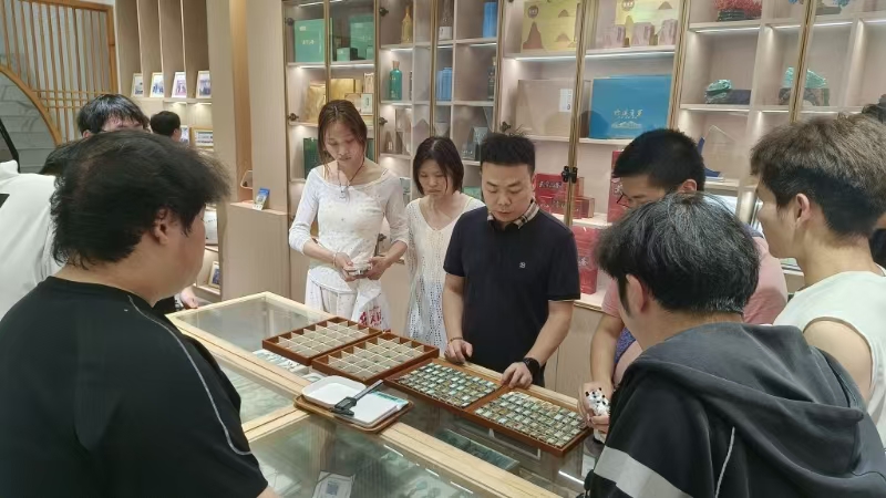 在调研过程中,员工们走访了多家绿松石品牌企业,与企业负责人、技术骨干深入交流,详细了解了产品设计趋势、加工工艺及销售模式。企业代表对公司"工学结合"培养模式给予高度认可,并就设计创新、工艺标准化等提出宝贵建议。值得一提的是,优秀毕业生代表现场分享了创业经验,生动展现了校企"双向赋能"的育人成效。