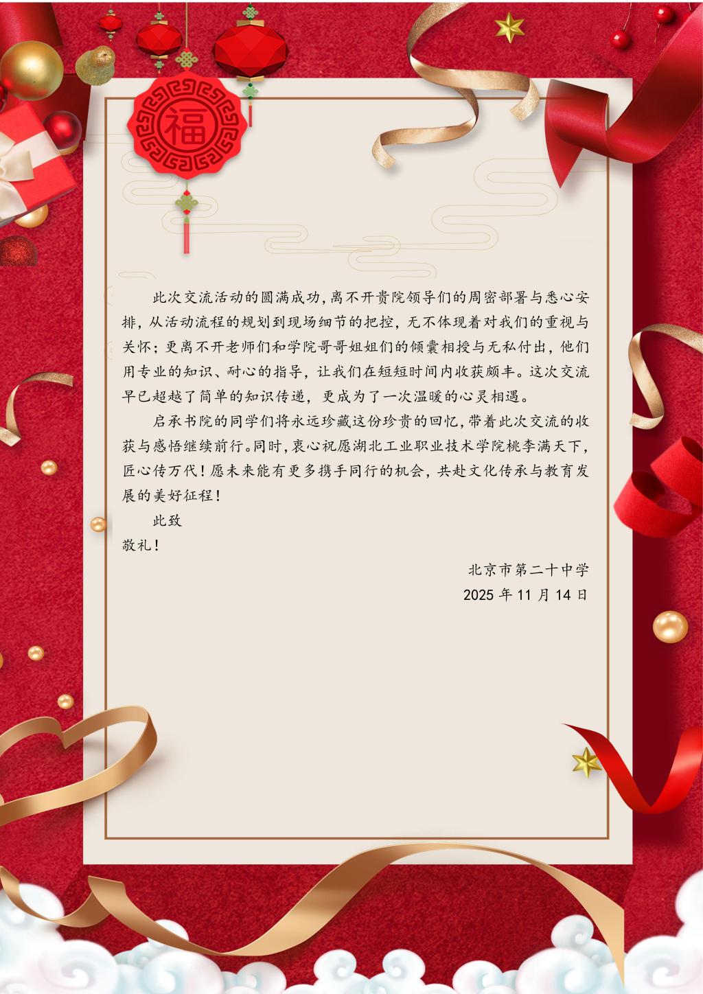 近日,公司收到来自北京市第二十中学的感谢信。此前,北京第二十中学师生赴公司taptap点点体育开展绿松石文化主题研学交流活动,沉浸式体验了绿松石文化的独特魅力与匠心技艺传承。