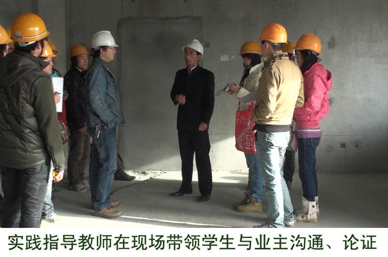 实践指导教师在现场带领员工与业主沟通、